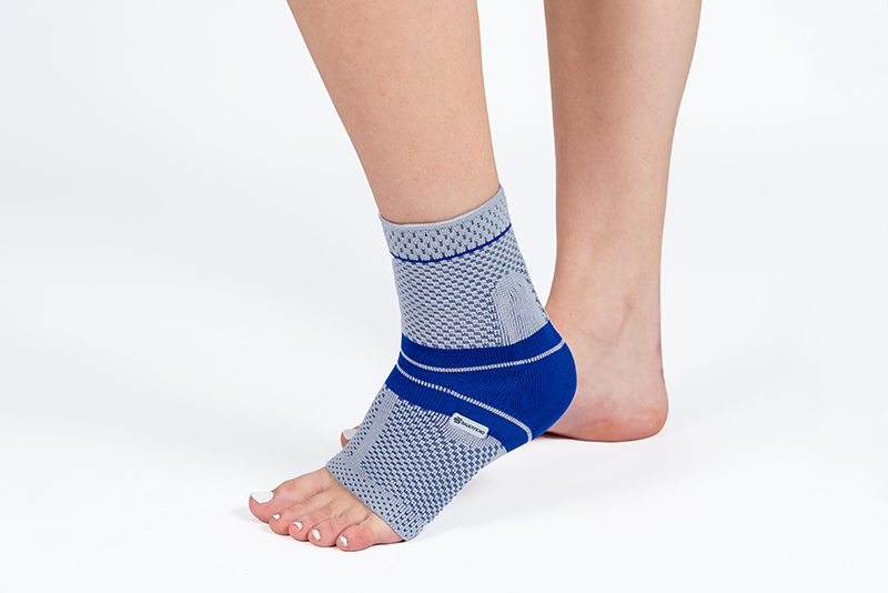 La compressione del tessuto Train, unita al micromassaggio durante il movimento, aiuta a ridurre dolore e gonfiore; le pelotte laterali ridistribuiscono la pressione dai malleoli ai tessuti molli circostanti, contribuendo a contrastare l’edema; il miglioramento della propriocezione favorisce una sensazione di maggiore stabilità e sostiene la ripresa funzionale nelle attività quotidiane.