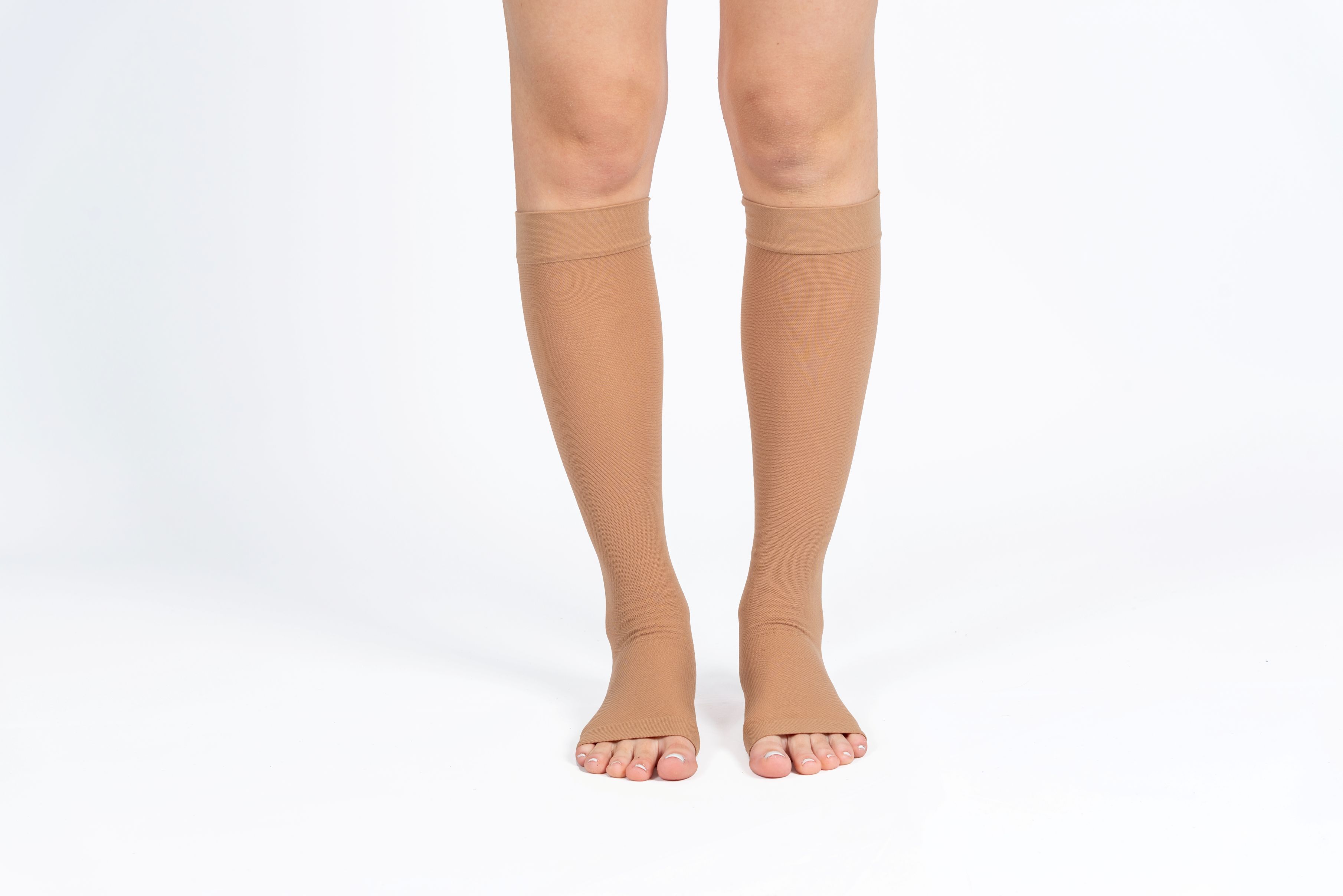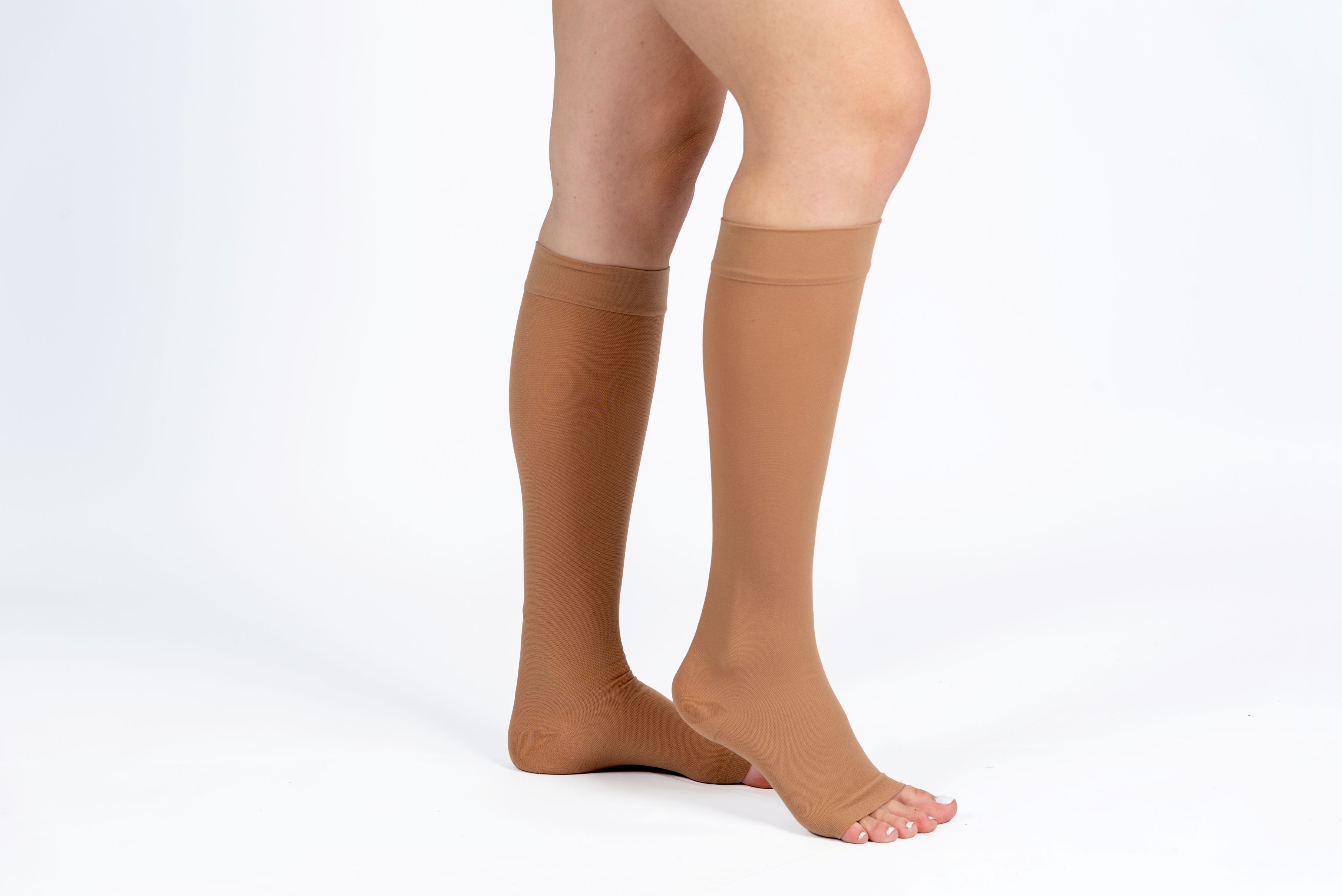 La calza esercita una compressione graduata che decresce dalla caviglia verso l’alto, con l’obiettivo di favorire il ritorno venoso. Questa distribuzione della pressione contribuisce a guidare il flusso dal distretto più periferico verso quello prossimale, rispettando l’impostazione tipica delle calze compressive per l’ambito venoso.