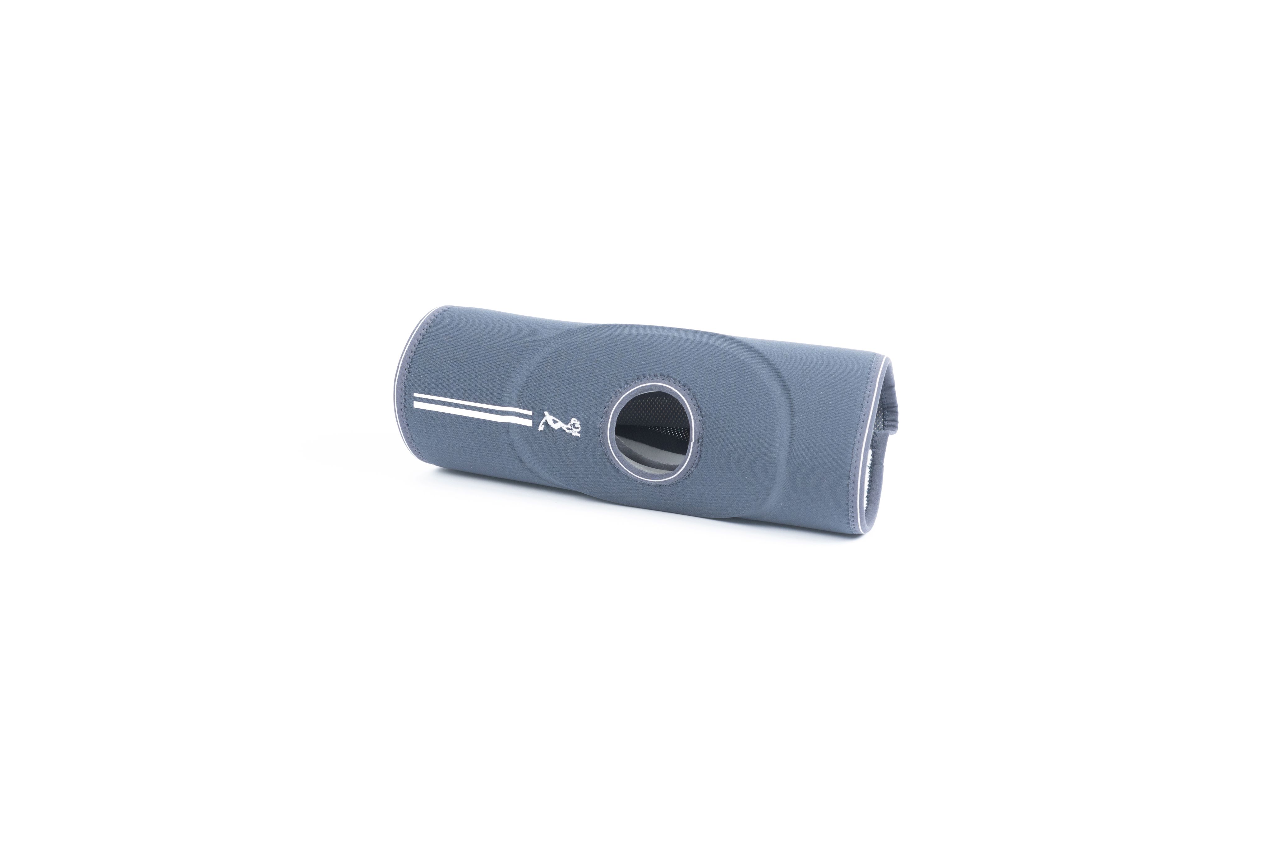 Il tutore ha una struttura soft in tessuto PhyloEtek® traspirante, privo di cuciture e con spessore ridotto, così da risultare confortevole a contatto e adatto all’uso prolungato. La tramatura è differenziata nella zona del popliteo per agevolare la flessione del ginocchio e limitare pieghe o compressioni indesiderate. Il disegno è tubolare e presenta un foro rotuleo, utile a centrare l’area patellare e a integrare il lavoro del cuscinetto.
