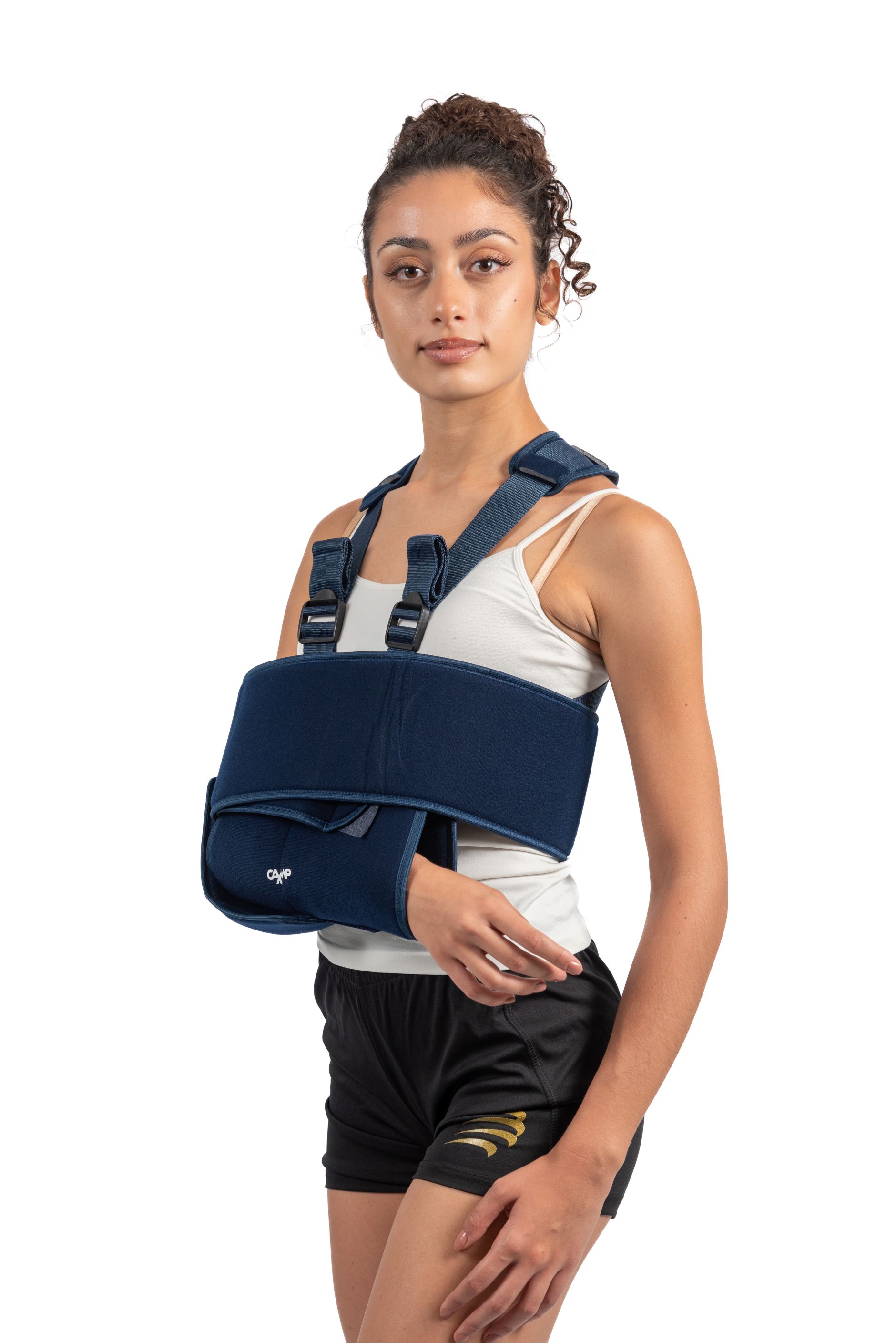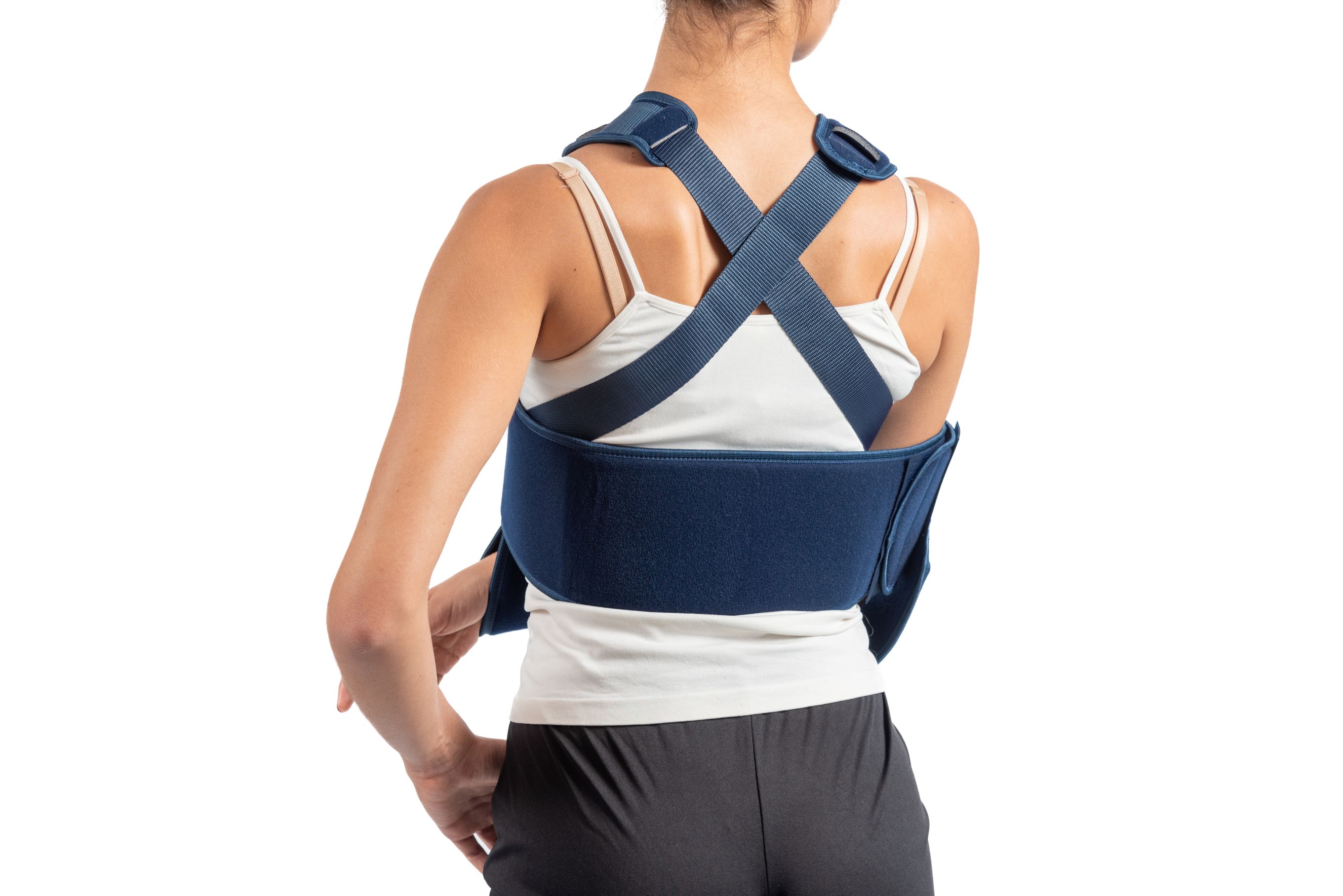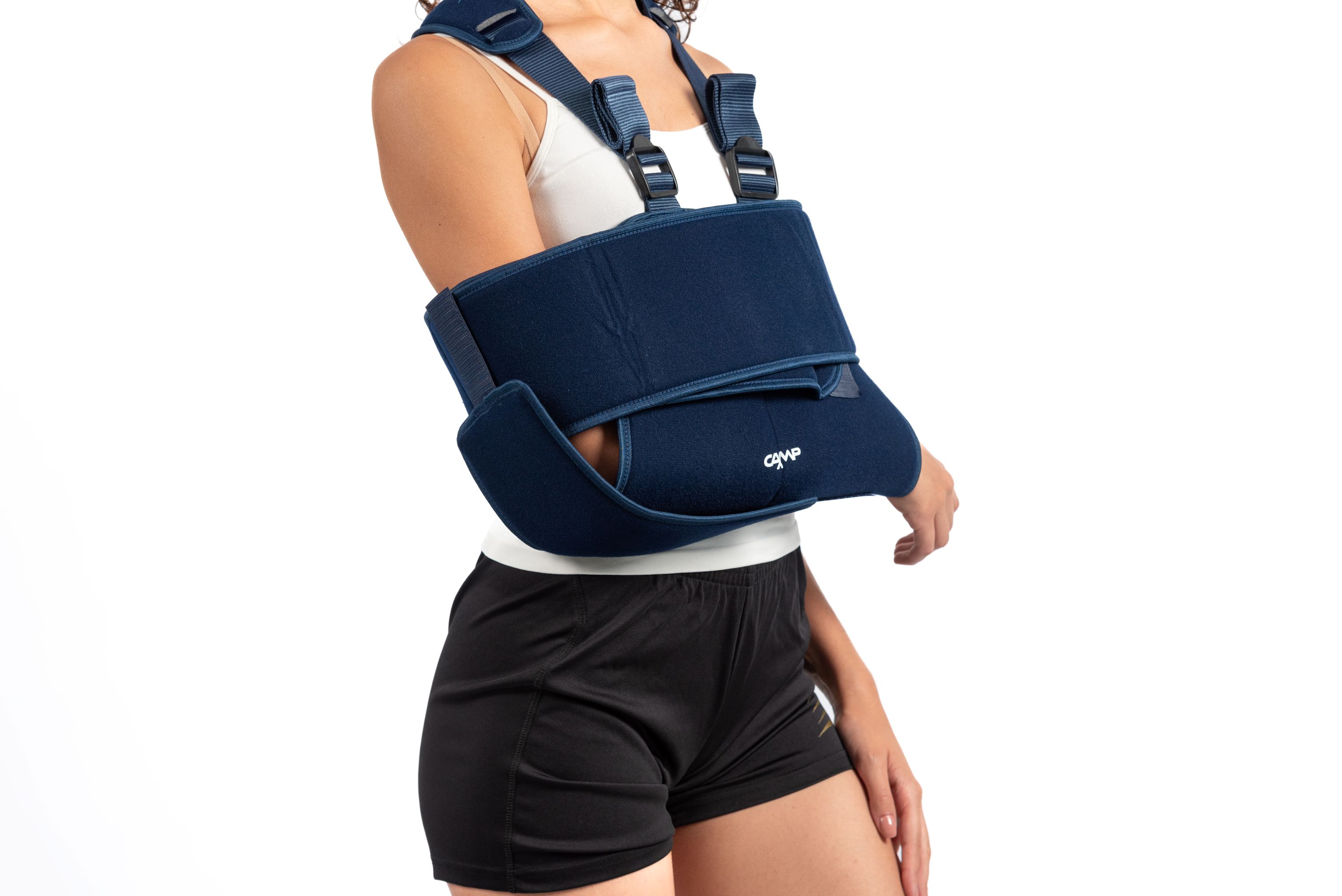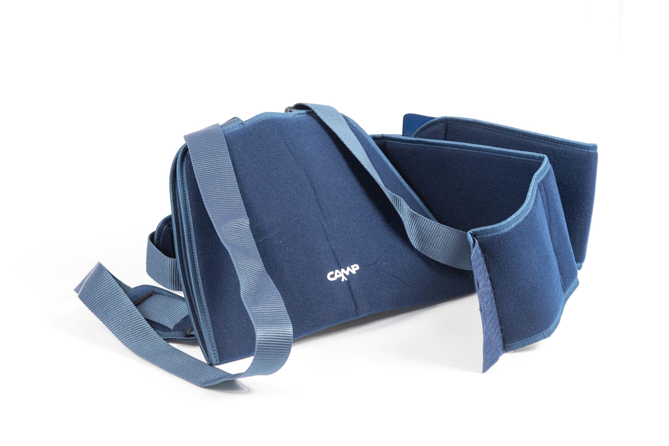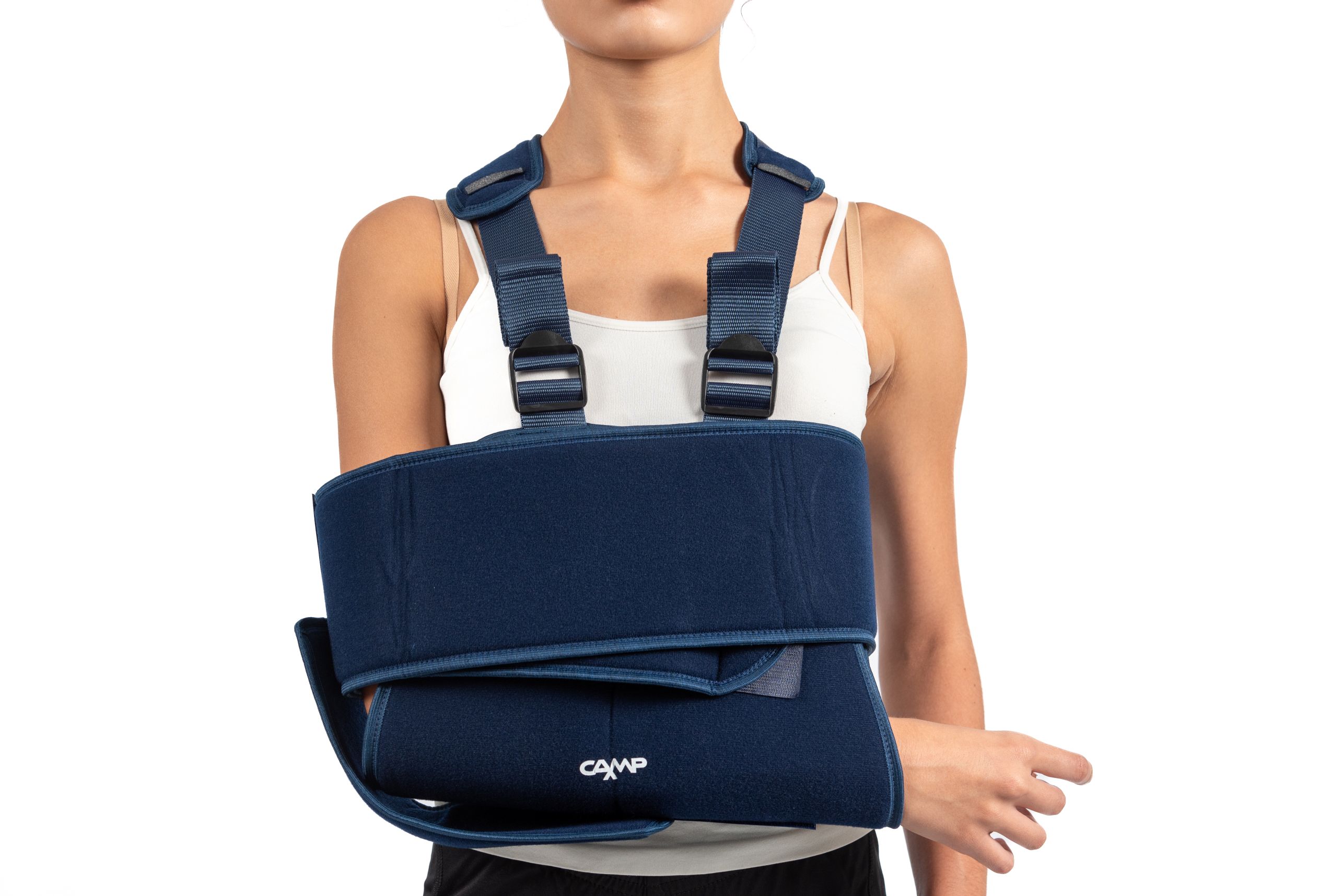 Dispositivo ortopedico progettato per immobilizzare spalla e braccio, utile in caso di lussazioni, fratture o nel post-operatorio.