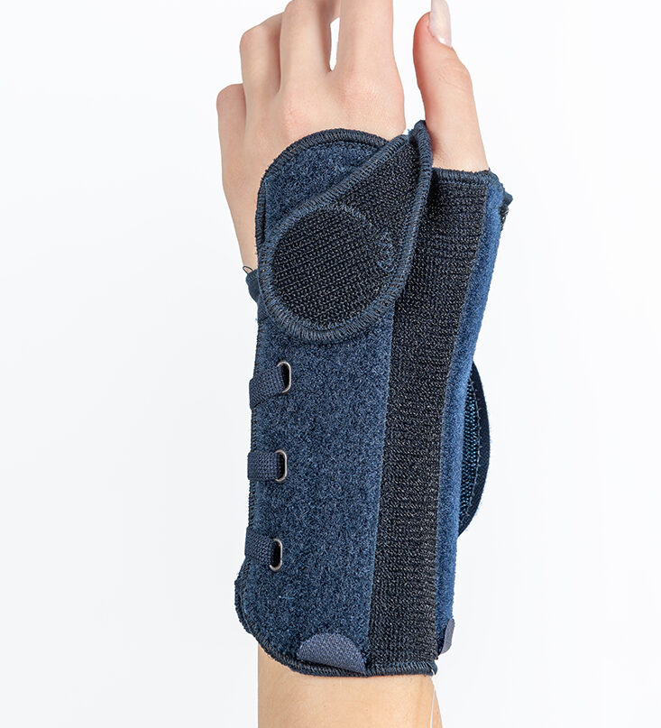 L’immobilizzatore del polso è una polsiera semirigida concepita per fornire supporto e immobilizzo dell’articolazione. La struttura è pensata per adattarsi alla mano e all’avambraccio, con una chiusura a doppia banda che permette di personalizzare sia la compressione sia la calzata, così da impostare in modo preciso il livello di contenimento desiderato. Alla base del dispositivo sono integrate tre aste anatomiche che possono essere modellate a freddo ed eventualmente rimosse, in modo da adeguare il grado di immobilizzazione secondo l’esigenza prevista.